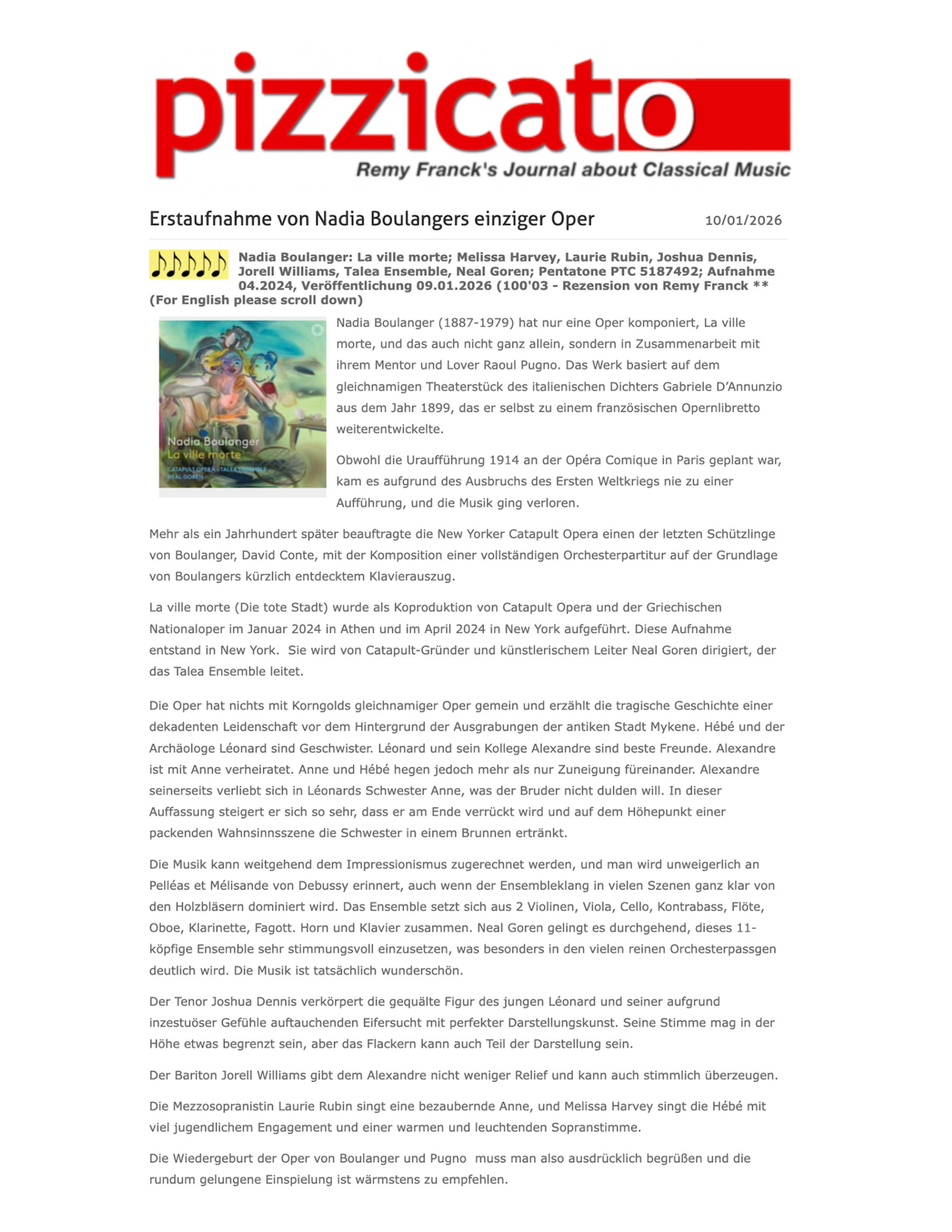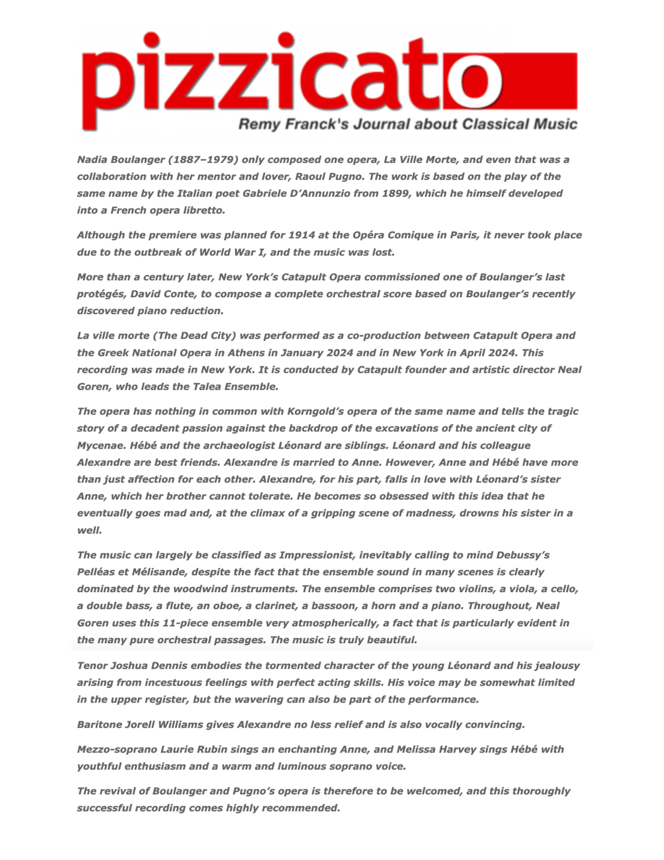La ville morte Album Review - Pizzicato Jan 16 Written By Catapult Opera Catapult Opera https://www.catapultopera.org